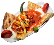 Искендер кебаб (Мясо с лавашом в томате и с йогуртом)